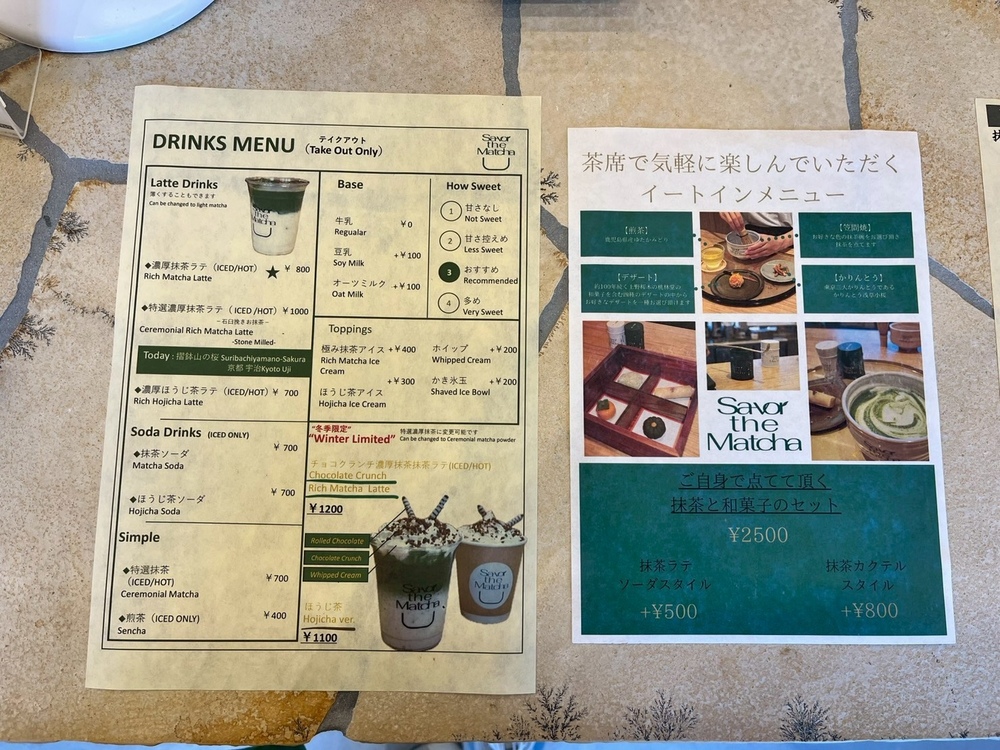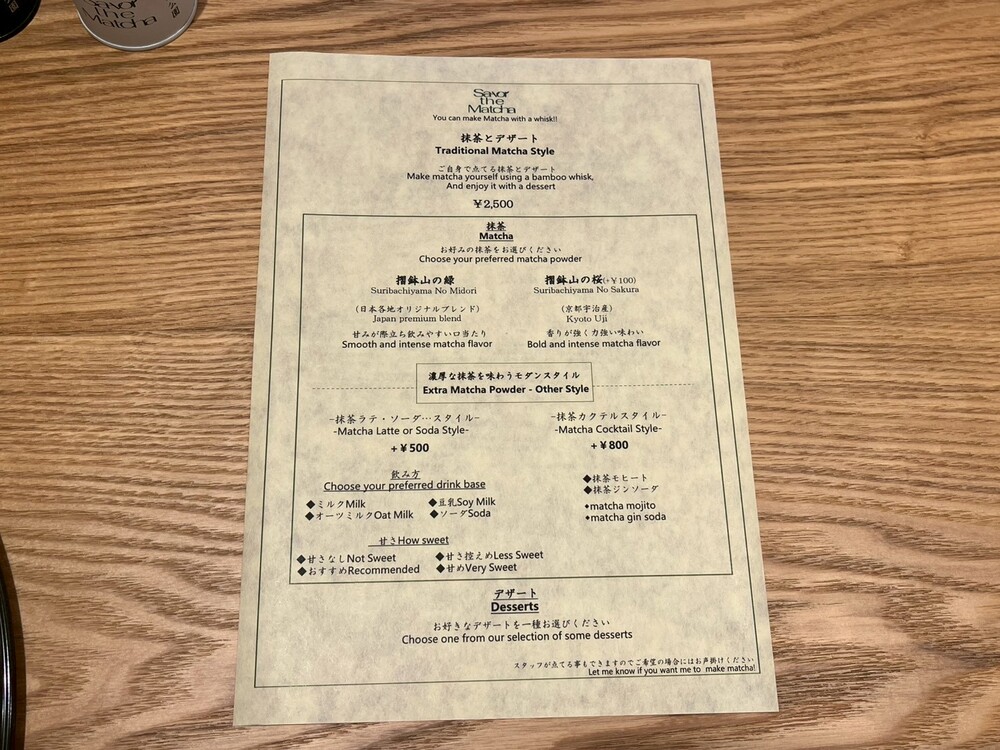 デザートは、お店の近くにある和菓子屋さんのもの、もしくは「Savor the Matcha」オリジナルのものから選べます。私はせっかくなので、お店オリジナルのスイーツを選びました。