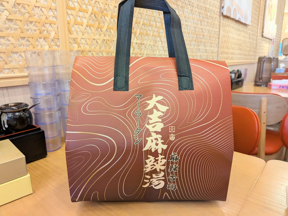 スープが漏れない丈夫そうな容器と、しっかりとした持ち帰りバッグ。「これならおうちで楽しむのもいいな!」と思える丁寧な包装でした。