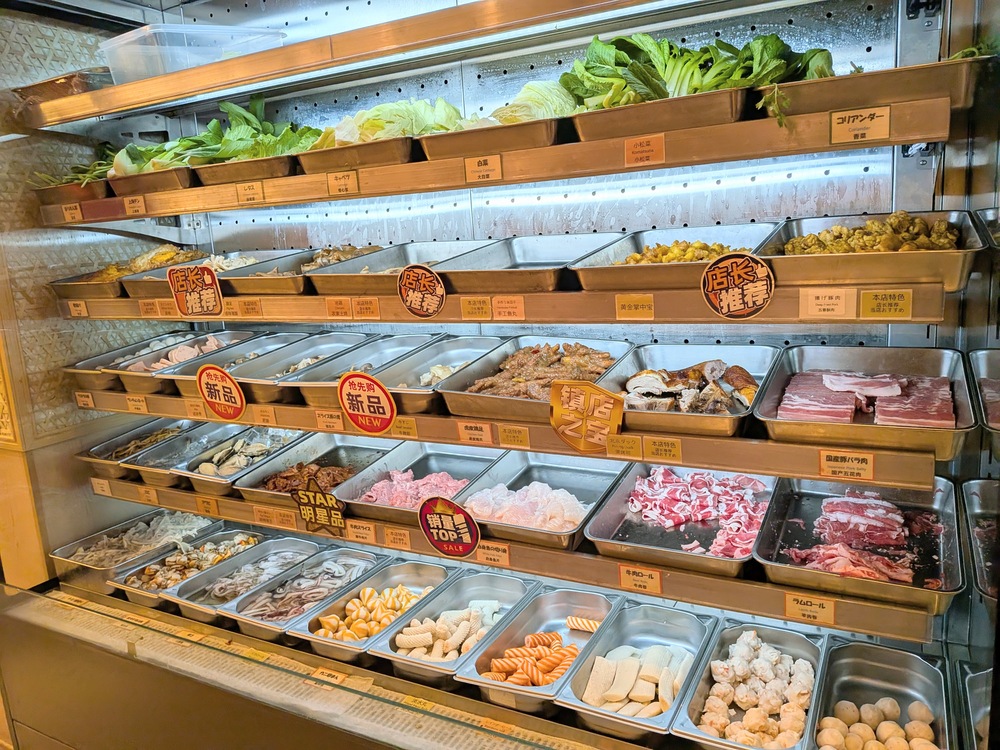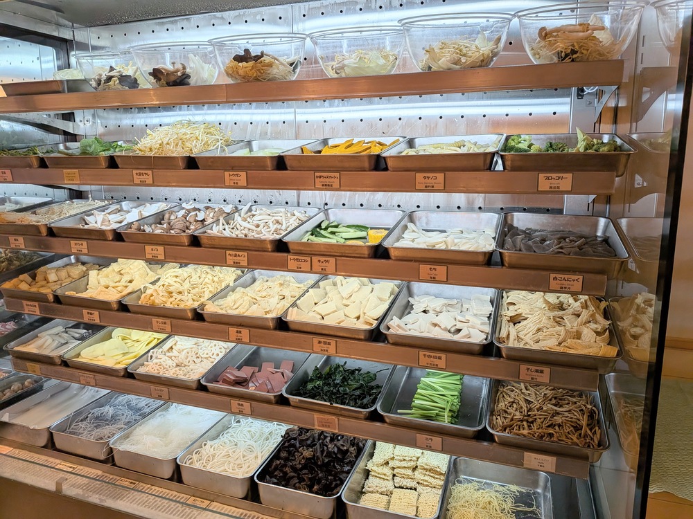 こちらでは、野菜、肉、魚介、豆腐類、練り物、そして麺まで、その数なんと約80種類もあります!