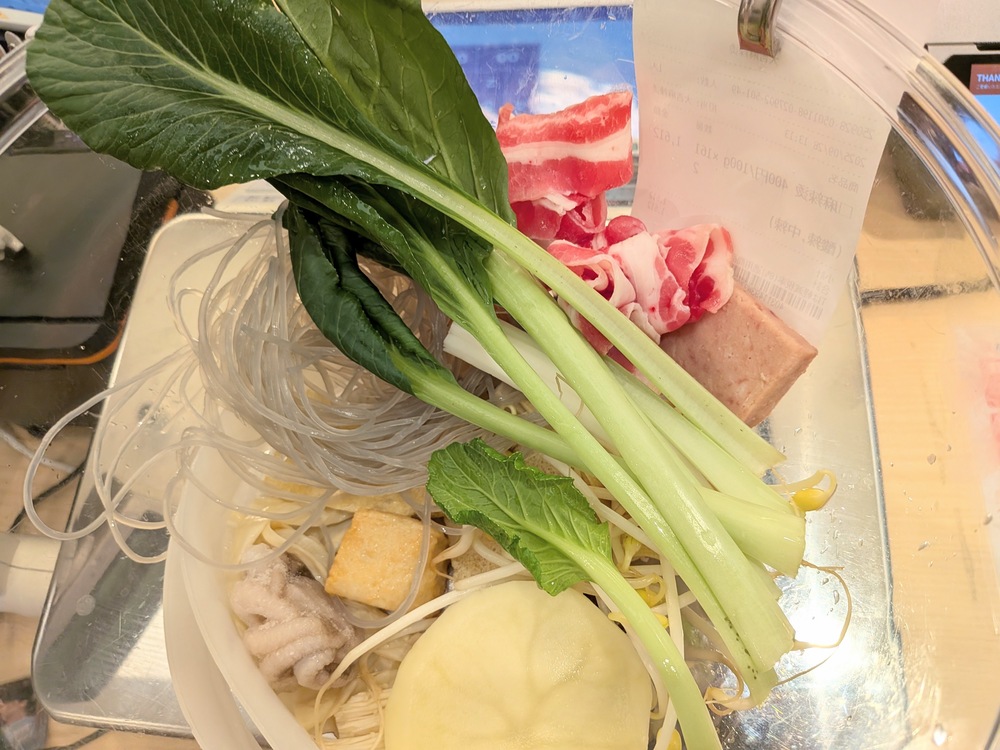 麺は春雨、ビーフン、中華麺などがありました。食材とともに自分で好きな量、好きな麺を取ります。