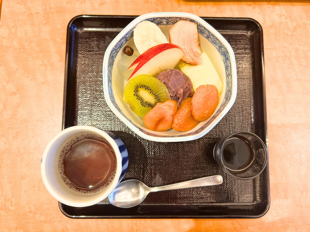 甘味も種類豊富で、あんみつやみつ豆は数種類ずつ、さらにはところ天やぜんざいなどもあります。