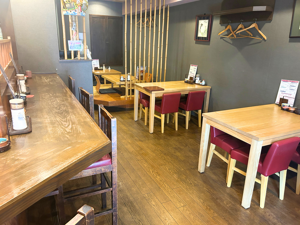 店内には、4人利用できるカウンター席、2人用のテーブル席が1卓、4人用のテーブル席が2卓あります。