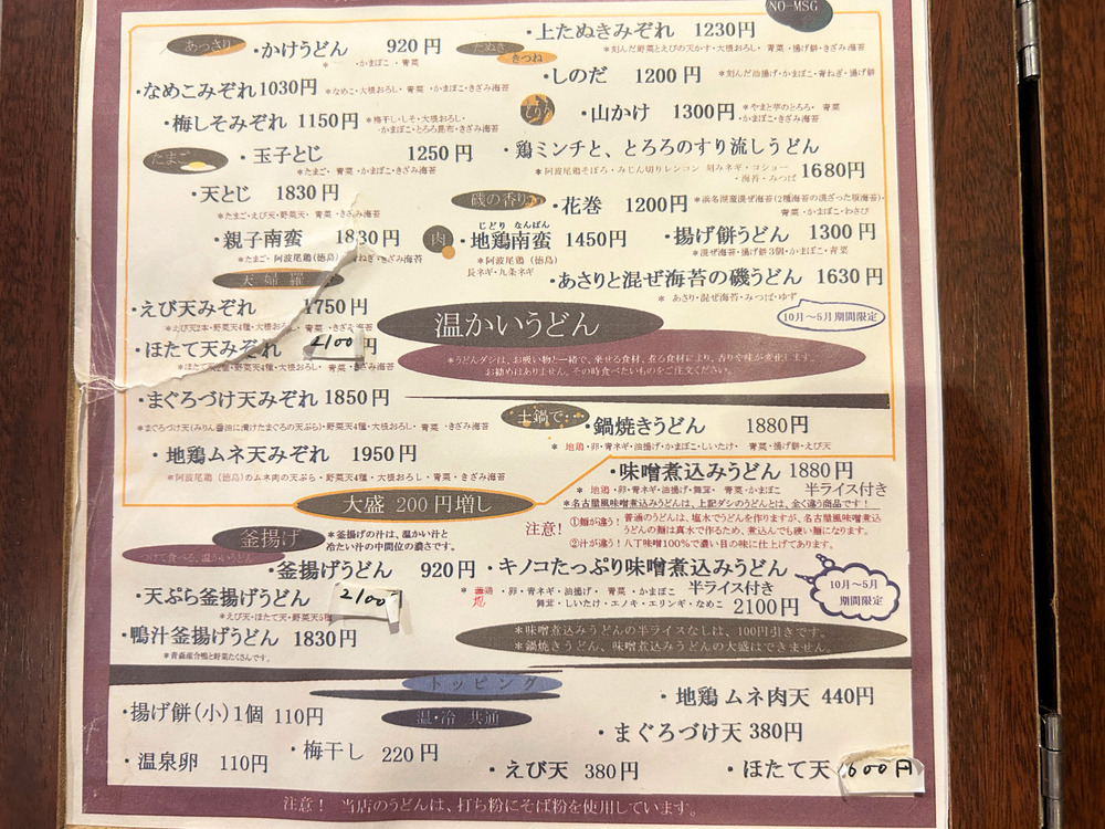 さらに、10月から5月の限定で味噌煮込みうどんも登場し、寒い時期に人気のメニューです。