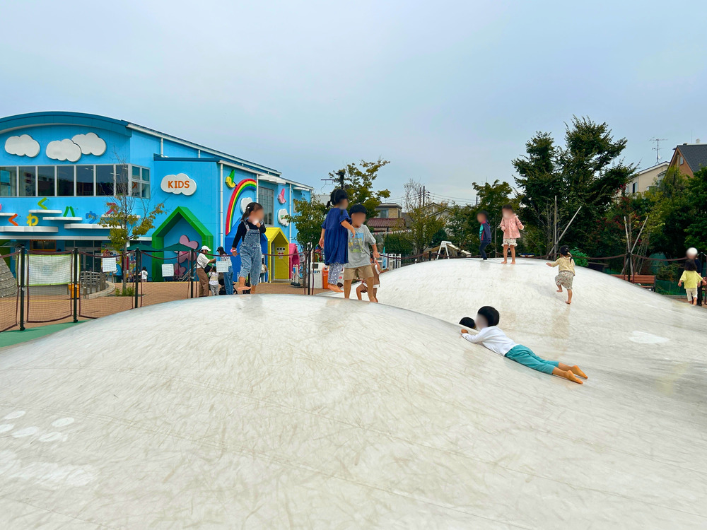 子どもが体を思いきり動かせる!ふわふわドームとしばふ広場