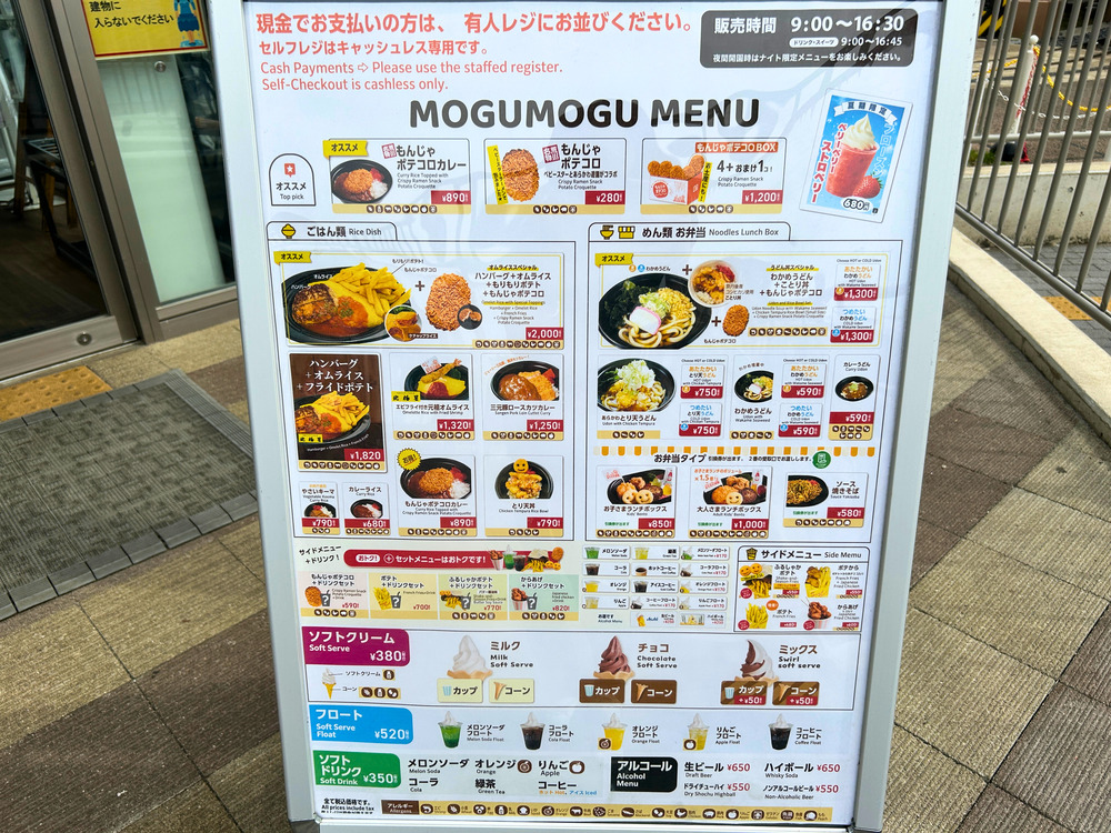 メニューは以下で、カレーやからあげ丼やうどんなどがありますよ。2階にも休憩スペースがあります。