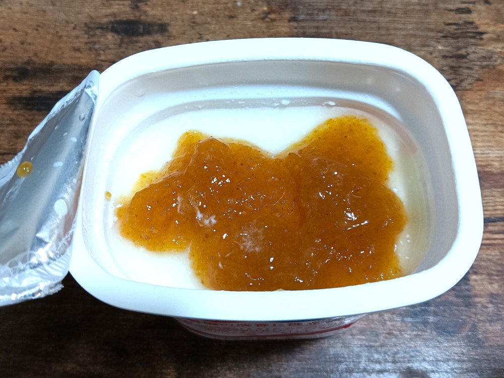 まずはシンプルにヨーグルトにかけて食べてみました。梅と桃の果肉がゴロゴロ入っていて、甘〜い香りの中にさわやかな酸味が香ります。